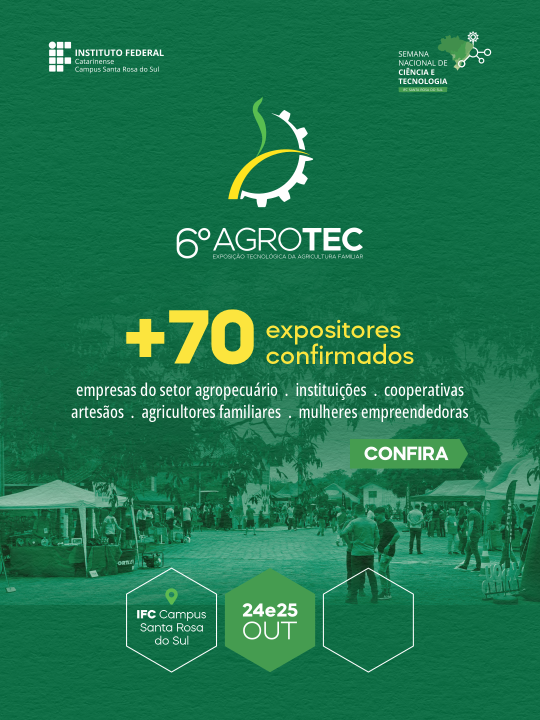 Expositores 2025 Site do IFC SRS Programação 2025 Expositores 2025 Inscreva-se nas oficinas e minicursos Fotos edições anteriores 3ª edição – 2019 4ª edição – 2023 5ª edição – 2024